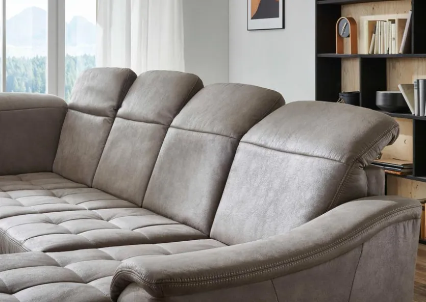 Farbe: PlatinMaterial: MikrofaserGröße: Breite: 341,00 cm, Höhe: 105,00 cm, Tiefe: 243,00 cm