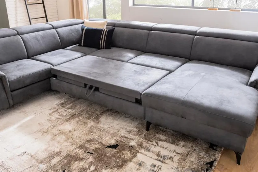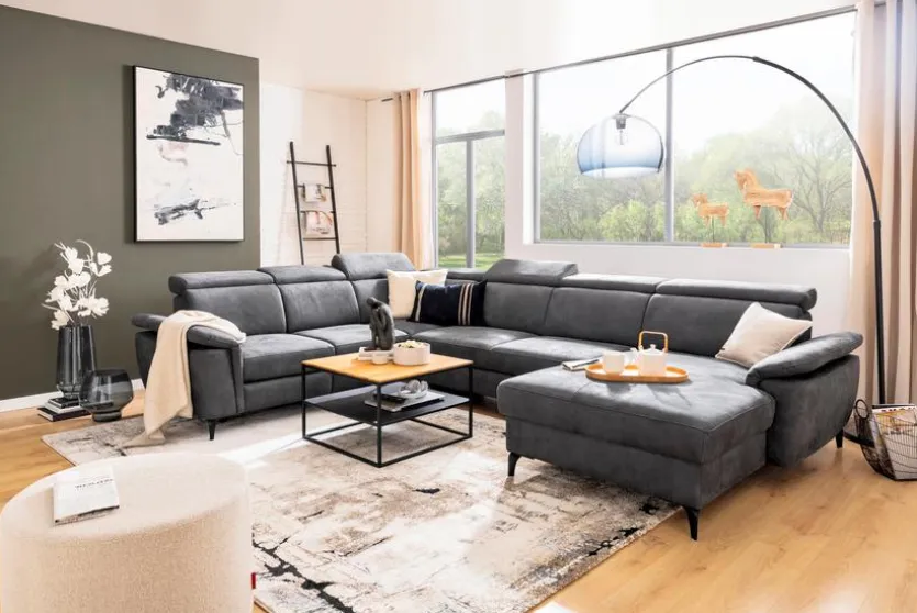 Farbe: GrauMaterial: MikrofaserGröße: Breite: 348,00 cm, Höhe: 99,00 cm, Tiefe: 237,00 cm