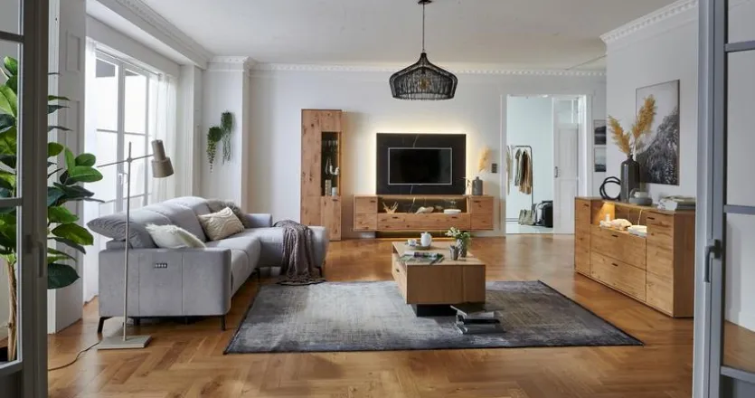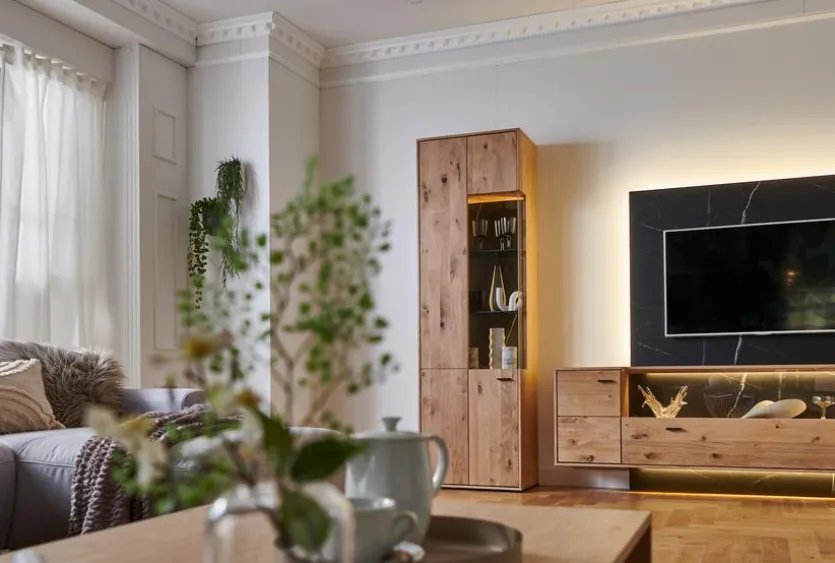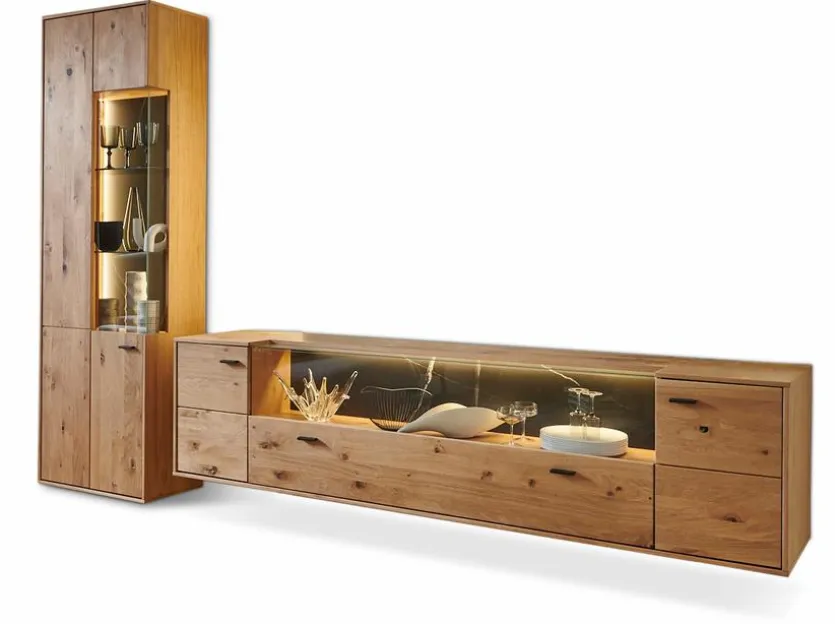 - Bestehend aus 1 Vitrine, 1 TV-Lowboard und 1 Wandpaneel