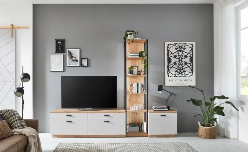 - Wohnwand bestehend aus TV-Lowboard, Regal und Kommode