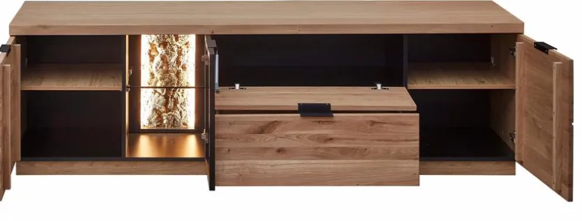 - Front aus massiver Wildeiche Bianco in gebürstet, Korpus außen aus Echtholzfurnier in Wildeiche Bianco und innen Nachbildung