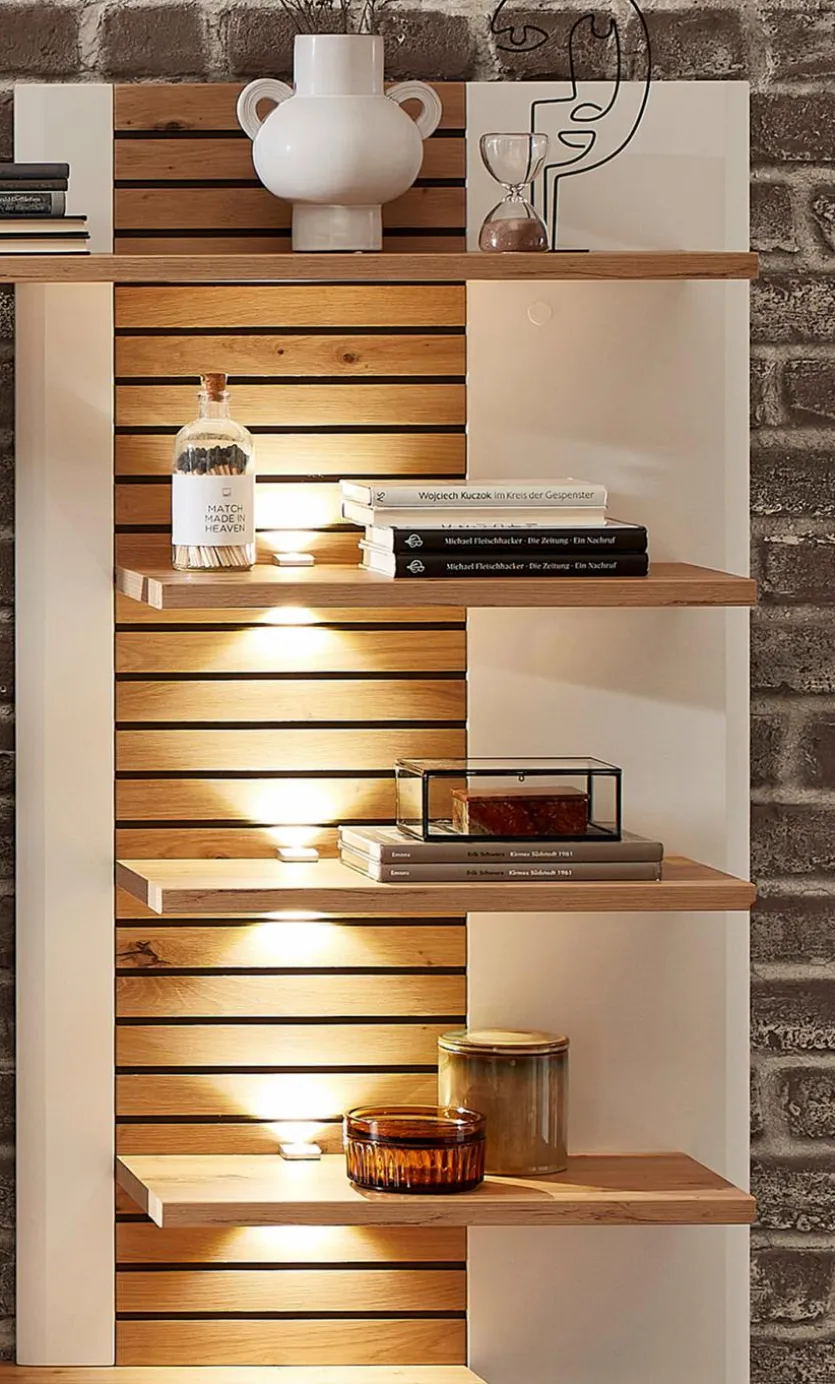 - Wohnwand aus Vitrine, TV-Lowboard und Wandpaneel