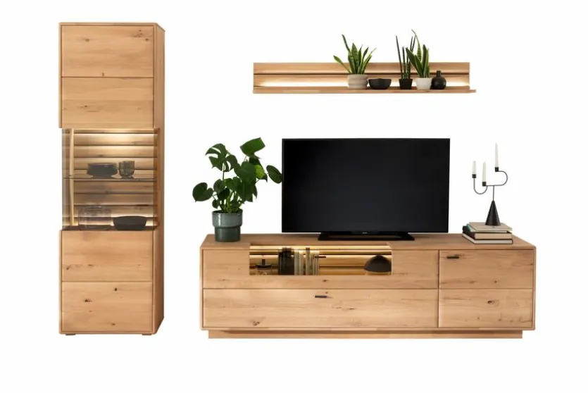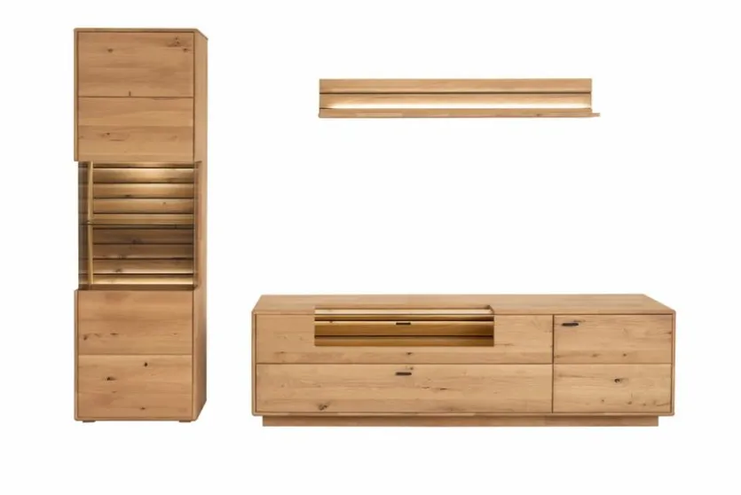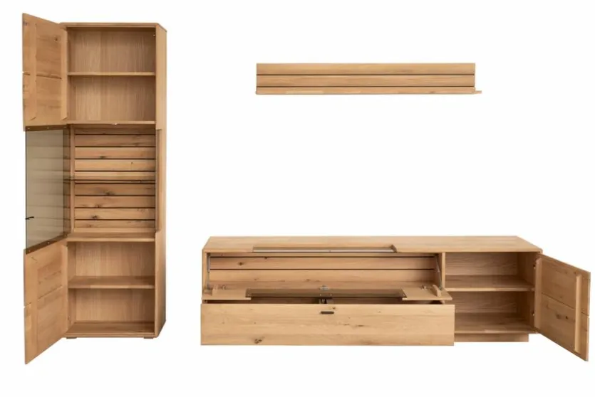 - Bestehend aus Vitrine, TV-Lowboard und Wandboard