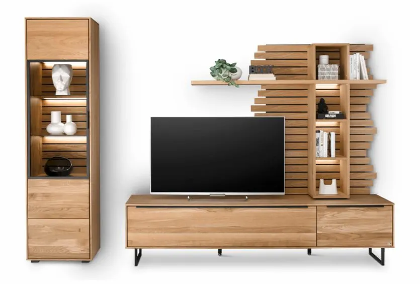 - Bestehend aus 1x Vitrine, 1x TV-Lowboard und 1x Wandpaneel