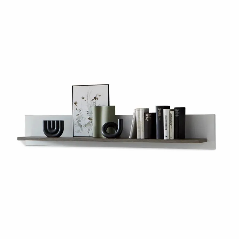 - Korpus aus Holzwerkstoff (Spanplatte) mit kratzfester Melaminharzfolie in „Modern White“, Front aus Holzwerkstoff (MDF) mit hochwertiger Dekorfolie in „Modern White“, Front-Absetzung in Kastanie Echtholz furniert, Sichtbare Rückwände in Vulcano glatt
