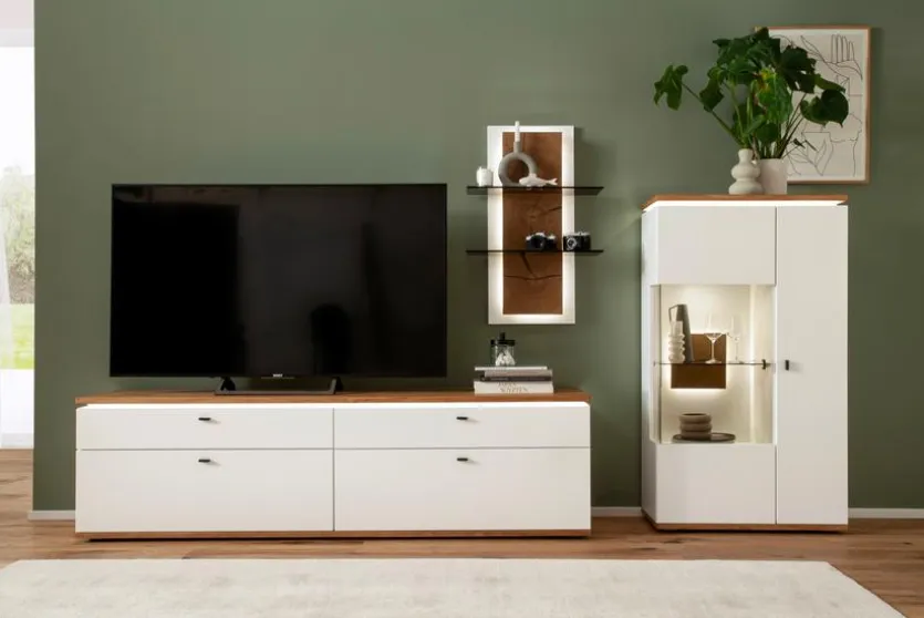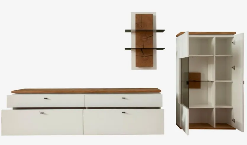 - Bestehend aus TV-Lowboard, Wandregal und Highboard