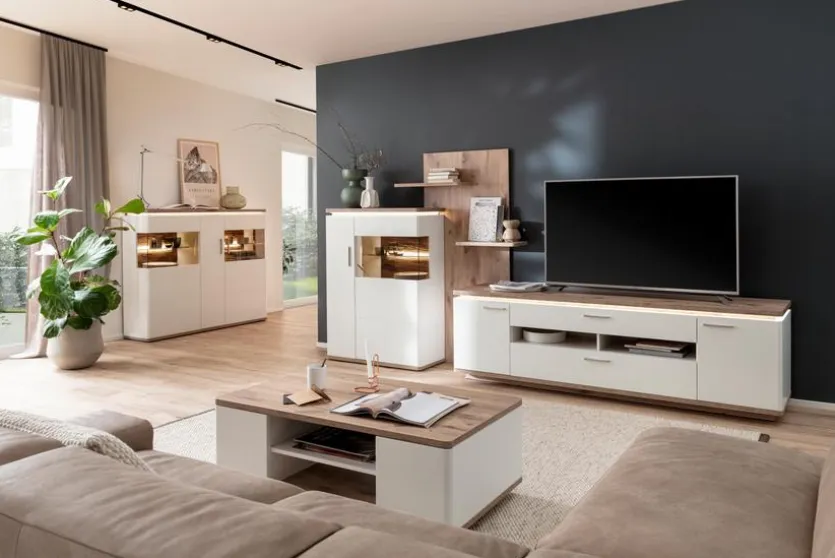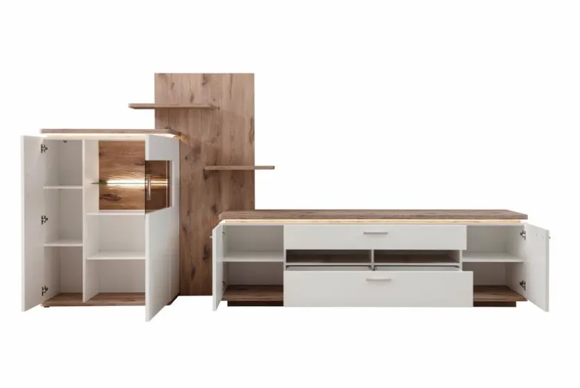 - Bestehend aus Highboard, Wandregal und TV-Lowboard