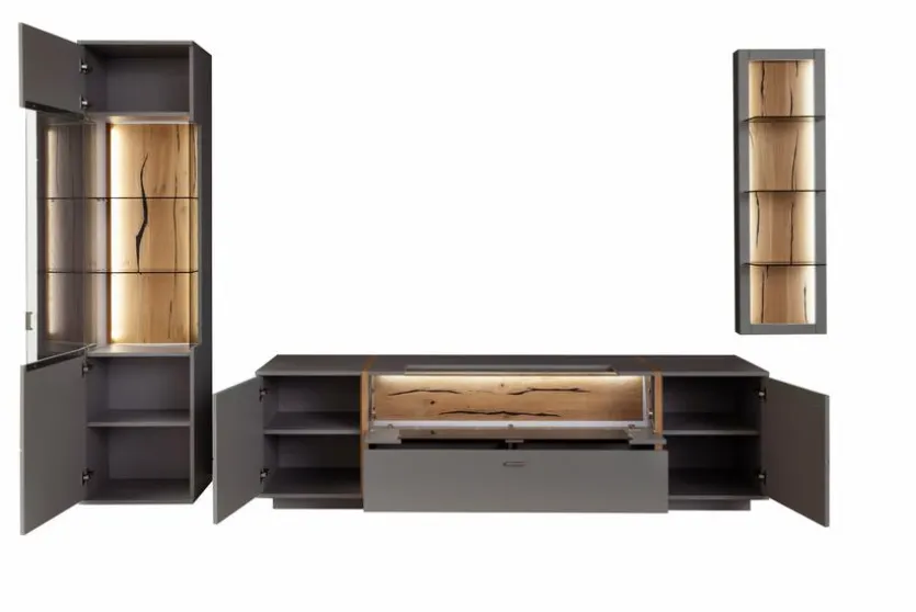 Wenn Sie bei Ihrer Einrichtung Funktionalität mit Stil kombinieren möchten, dann treffen Sie mit der Wohnwand Sevilla genau die richtige Wahl. Sie bietet in den Schubläden ausreichend Stauraum für verschiedenste Alltagsgegenstände und setzt gleichzeitig Ihre Schätze hinter Glas gekonnt in Szene. Das macht die Wohnwand Sevilla zu Ihrem neuen Lieblingsstück.