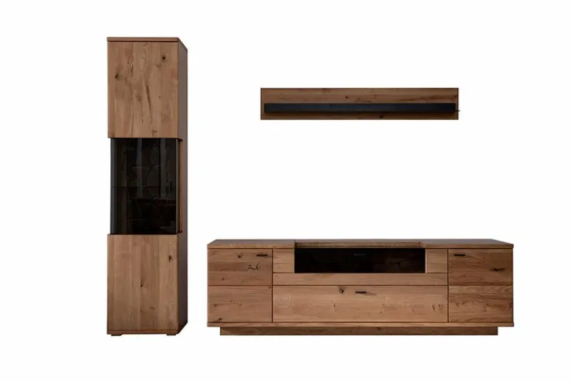 - Wohnwand aus Vitrine, TV-Lowboard, Wandboard